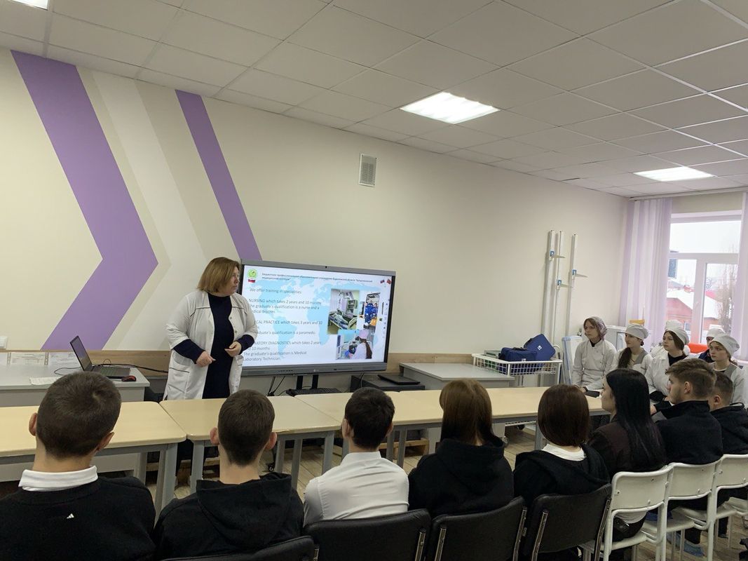 29.01.2026 в колледже прошла встреча с обучающимися Зеленопоселковой школы в рамках профориентации, ребят познакомили с оснащением и возможностями симуляционного центра БПОУ ВО "БМК".