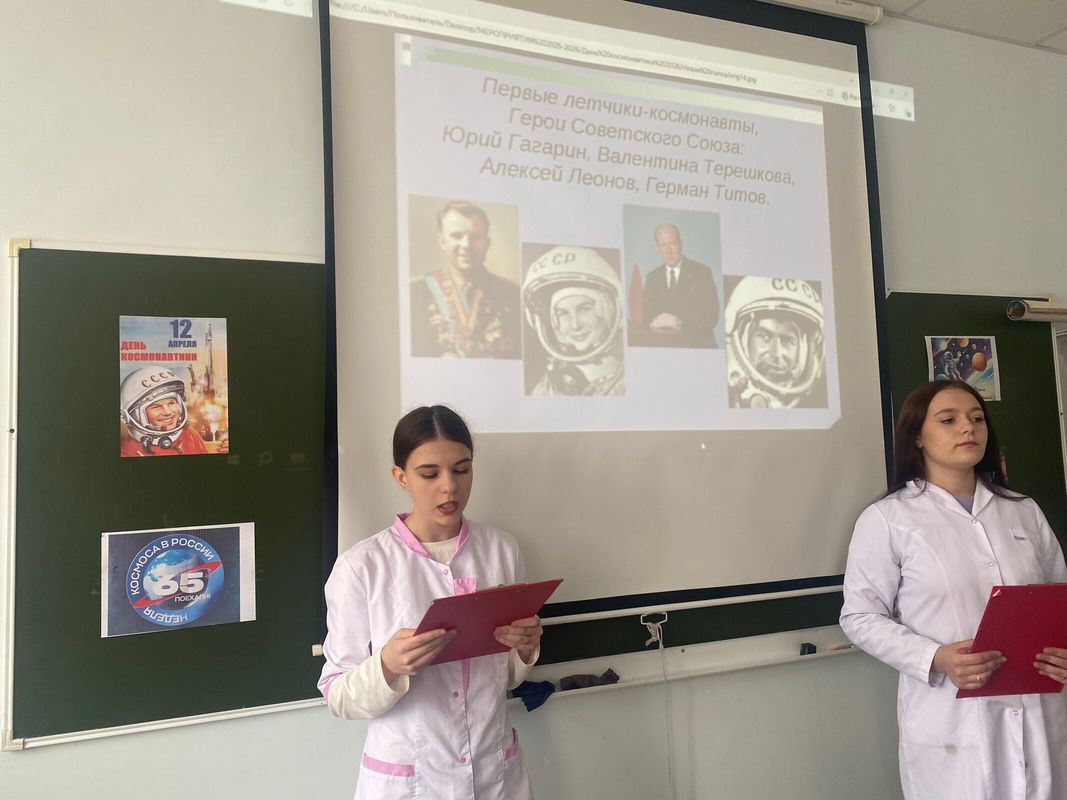В рамках Недели космоса, приуроченной к 65-летию первого полета человека в космос ,для обучающихся 1-х курсов БПОУ ВО «БМК» были проведены увлекательные пятиминутки на тему «Страницы о космосе».